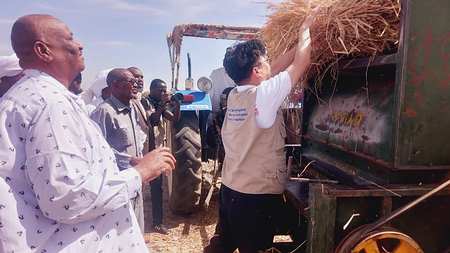 شهد وفد من منظمة الاغذية والزراعة العالمية(فاو) وصندوق نقل التقانة والتنمية الزراعية ووحدة الارز بوزارة الزراعة وقيادات ومزارعي مشروع العالياب شهدوا تدشين حصاد الارز المروي الذي تموله المنظمة كتجارب بحثية تهدف إلى انتاج التقاوي والتوسع في زراعته خلال المواسم القادمة.